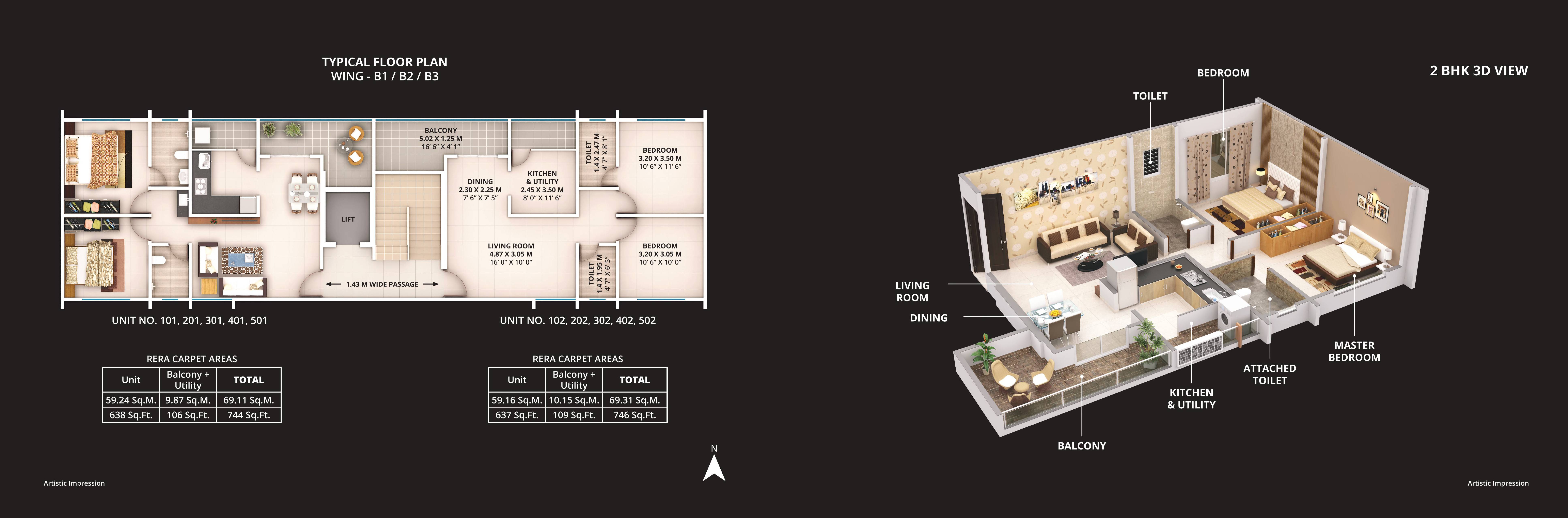 The Building B, consisting of Wing B1, Wing B2 and Wing B3 having Cozy 2 BHK Apartments.